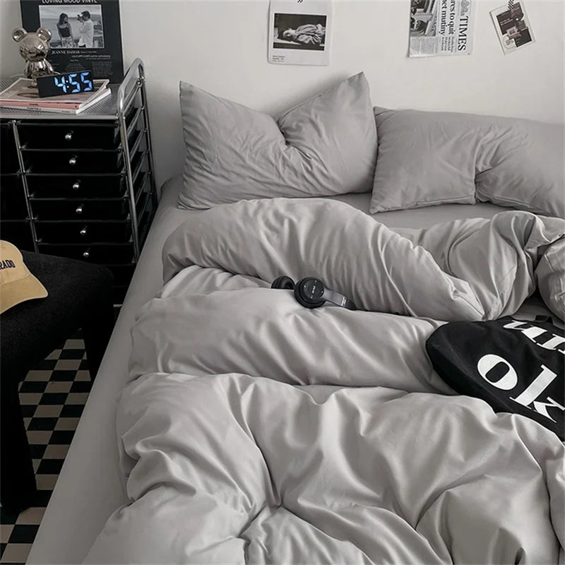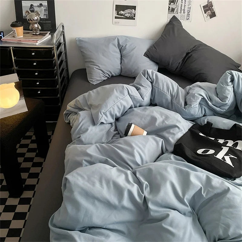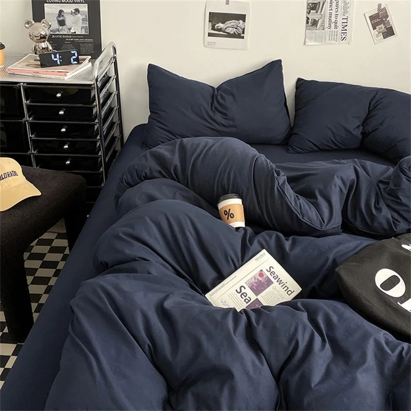100% Cotton Bed Linen Bedding Set Washed Cotton Four Pieces Bed Sheet Set Comforter Sets Dolid Double Couple Bed Quilt Cover 100% Cotton Bed Linen Bedding Set Washed Cotton Four Pieces Bed Sheet Set Comforter Sets Dolid Double Couple Bed Quilt Cover