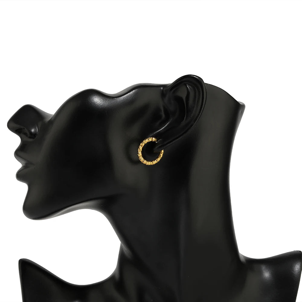 6pcs Stainless Steel Round Embossing Ear Rings PVD Gold Plated Korean Earrings Hoops Earring for Women Female Girls Metal Luxury