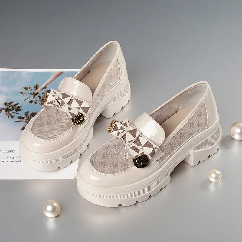2024 Spring Female Shoes Women Fashion Mary Jane Round Toe Flats Loafers Oxfords Platform Casual Metal Chain Buckle Heels Black loading