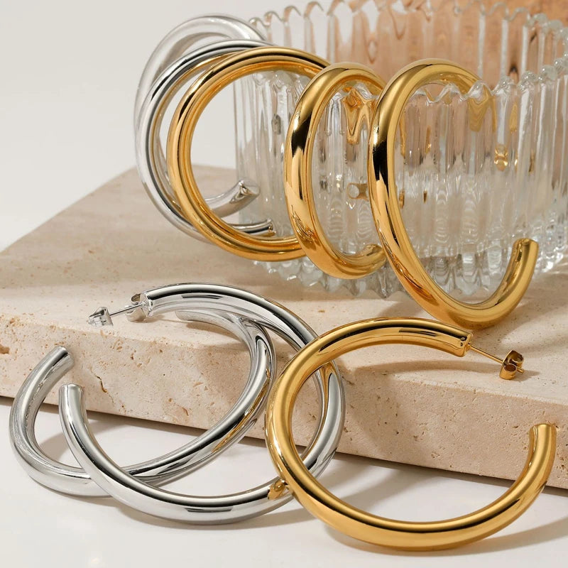 Exaggerated Hollow Thick Big Circle Hoop Earrings For Women Stainless Steel C-Ring Chunky Piercing Earrings Fashion Jewelry Gift