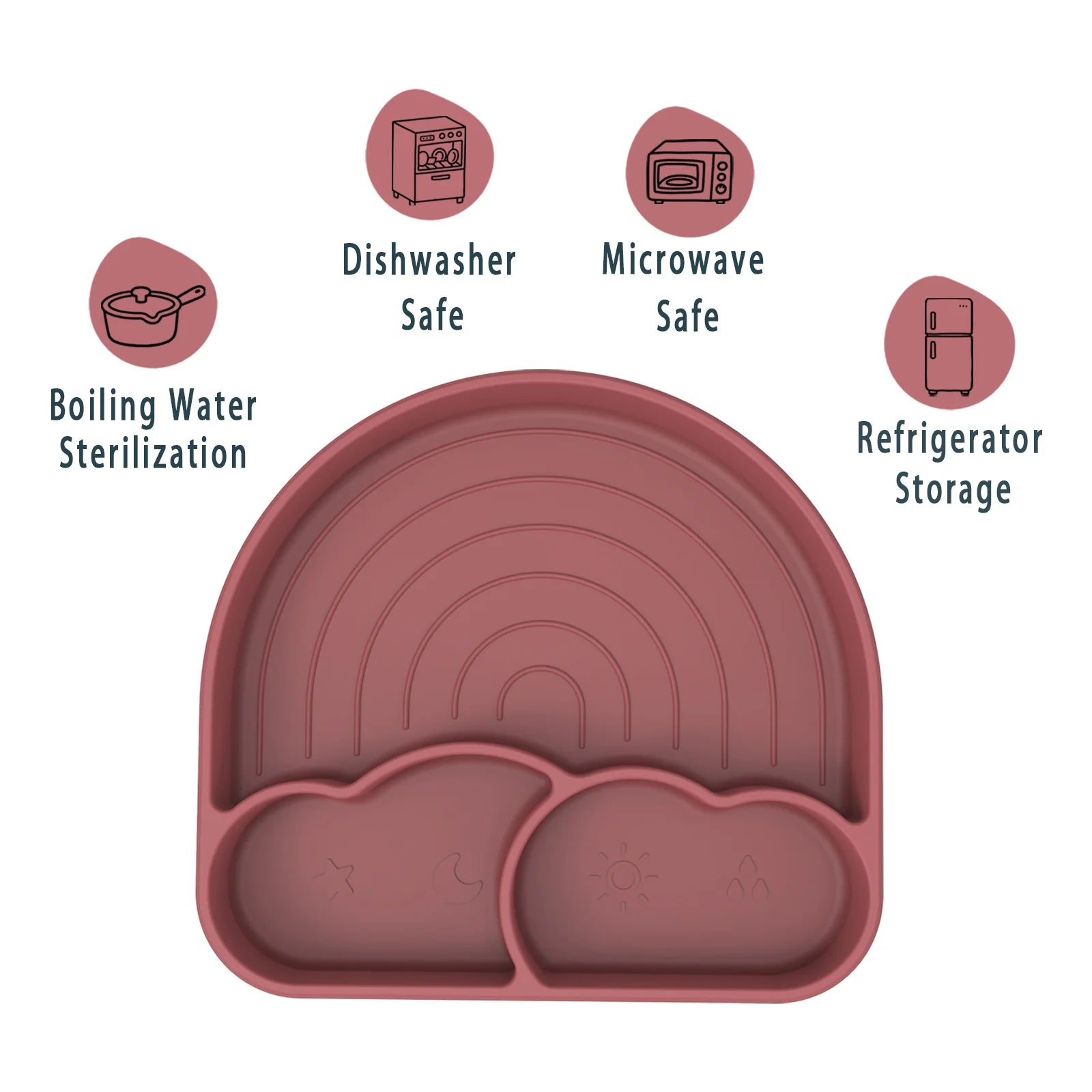 Suction Plates for Baby Silicone Plates with Suction Divided for Toddler Baby Dishes Kids Utensils Rainbow Shape